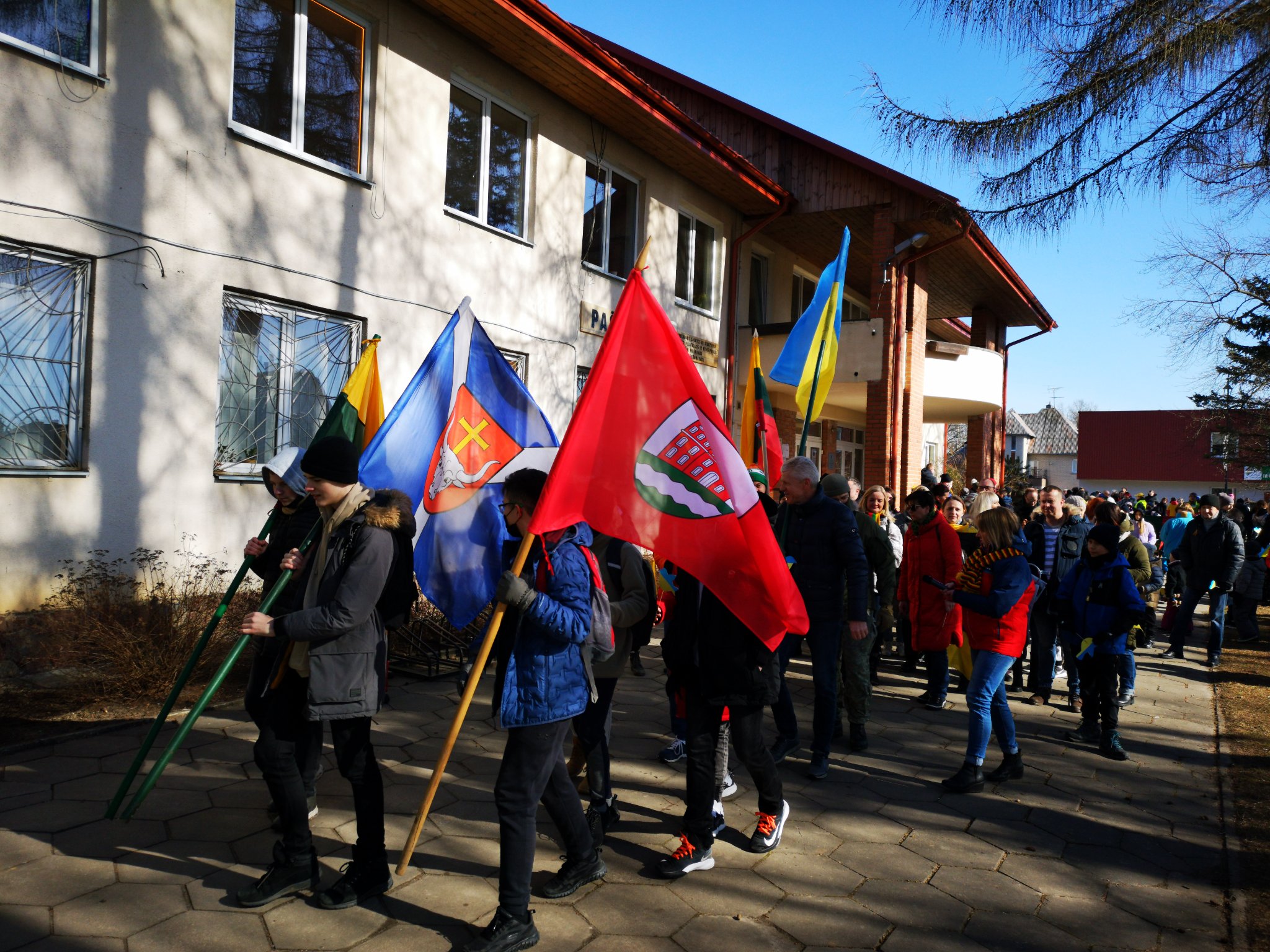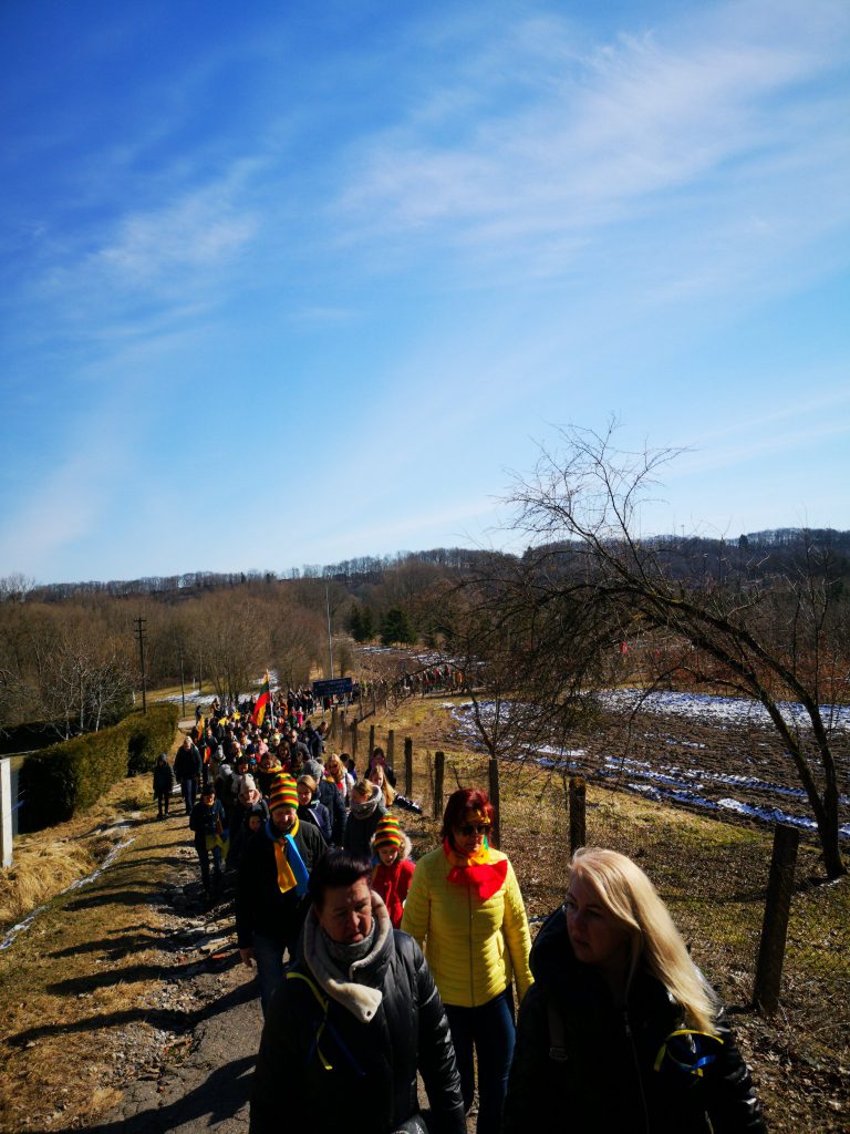 Kovo 11-ą raudondvariečių širdys plakė vienu ritmu. Tokios žmonių upės Raudondvario gatvės nematė jau seniai. Apie penki šimtai žygeivių susirinko į tradicinį Kovo 11-osios žygį, kurį jau trečius metus organizuoja Raudondvario kaimo ir Raudondvariečių bendruomenės, kultūros centras. Labai džiugu, kad aktyviai šį kartą dalyvavo Raudondvario gimnazijos ir A. ir A. Kriauzų pradinės mokyklos mokiniai ir mokytojai. O mažieji lopšelio-darželio „Vyturėlis” auklėtiniai ne tik žygiavo kartu, bet ir prigamino kelis šimtus paukščiukų su Ukrainos vėliavos spalvomis, kuriuos išdalino visiems susirinkusiems. Pasimeldę Šv. mišiose Raudondvario bažnyčioje, visi rinkosi prie kultūros centro . Nuo ten didžiulė minia , nešina Lietuvos, Ukrainos, Kauno rajono ir Raudondvario vėliavomis, pajudėjo Raudondvario gatvėmis. Sustodavo svarbiose istorinėse vietose, kur atiduodavo pagarbą ir traukė toliau. Žygį užbaigė dvaro parke. O po žygio, kas nepavargo, rinkosi į koncertą „Dainuoju laisvę” kultūros centre.