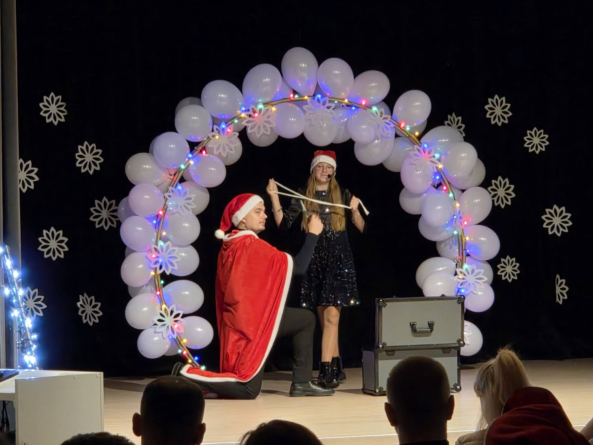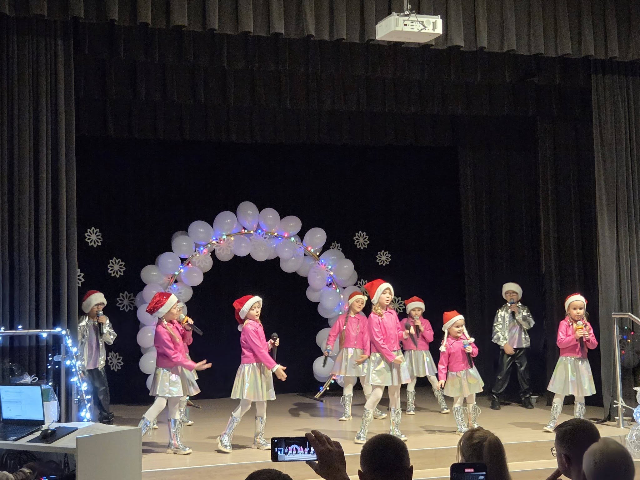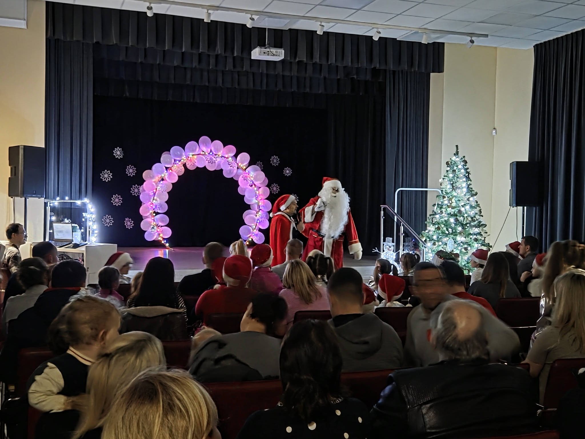 Nors sniego šiemet nebuvo, šventinės nuotaikos netrūko – ją kūrė muzika, šokiai, vaikų juokas ir bendrystė pilnutėlėje salėje. O kaip gi Kalėdos be Kalėdų senelio? Jis kartu su nykštuku pasveikino susirinkusius, o vaikų pasirodymai akimirksniu išsklaidė net ir senelio nuovargį.