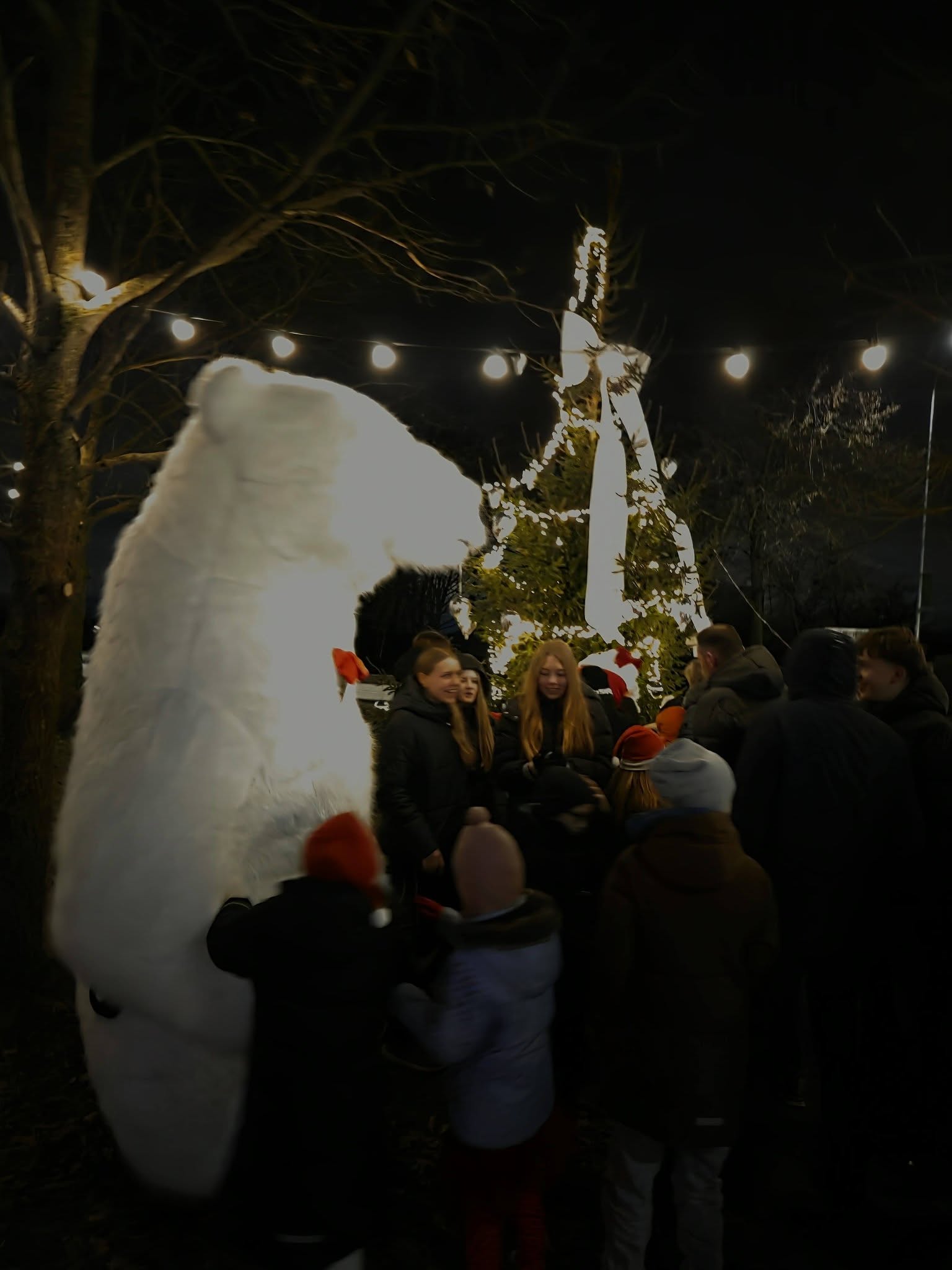 Vakarą užbaigė eglutės įžiebimas, sausainiai bei arbata ir netikėtas svečias – baltoji meška!
